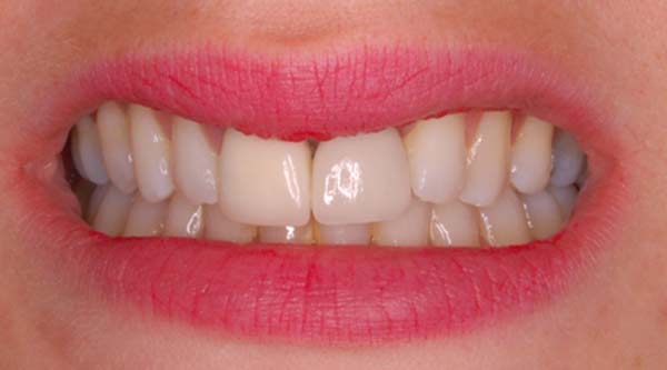 Before: The patient had a missing front tooth without a restoration.